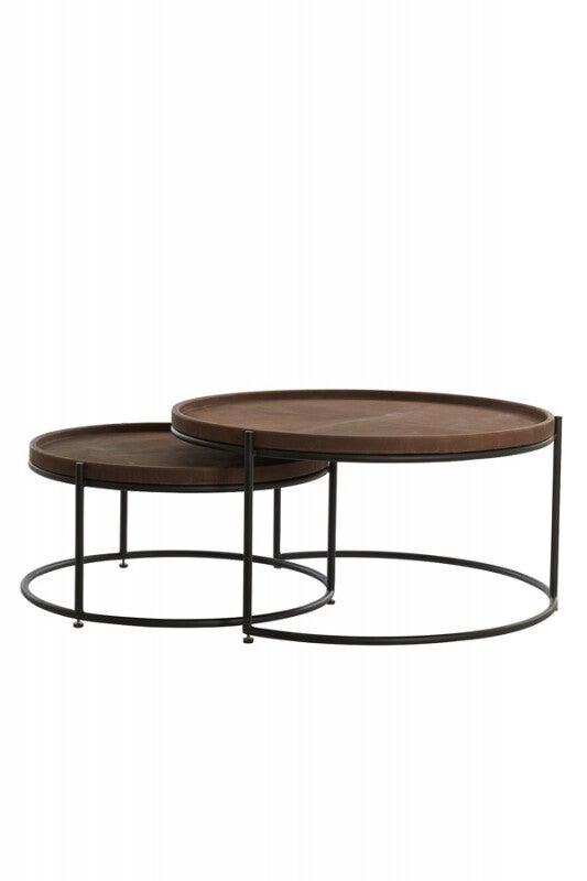 Salontafel S/2 Ø64x30,5+Ø79x38 cm JAIRO leer d. bruin+zwart
